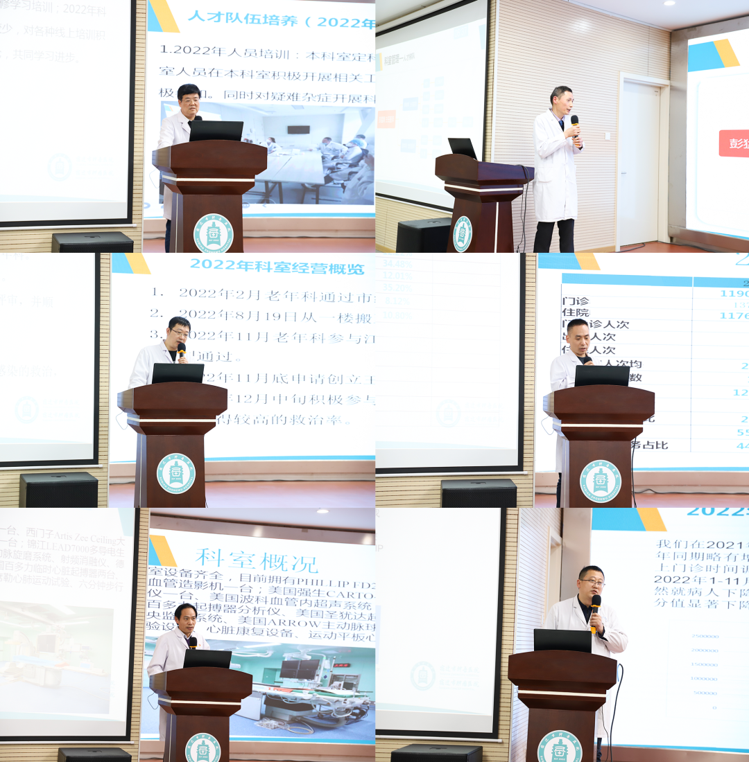 臨床、醫(yī)技、護(hù)理、職能部門共計(jì)71名中層干部分別圍繞醫(yī)院發(fā)展目標(biāo)和專項(xiàng)任務(wù),聚焦工作亮點(diǎn)和創(chuàng)新工作,聯(lián)系實(shí)際,對(duì)科室一年來的業(yè)務(wù)開展、學(xué)科建設(shè)、人才培養(yǎng)、醫(yī)德醫(yī)風(fēng)方面進(jìn)行述職,并對(duì)照三級(jí)醫(yī)院創(chuàng)建標(biāo)準(zhǔn),分析工作中存在的不足及原因,謀劃2023年度工作。